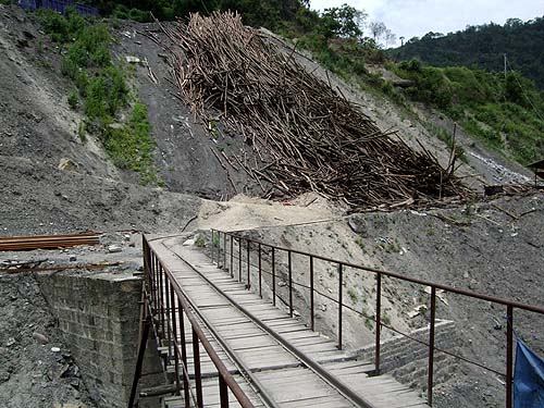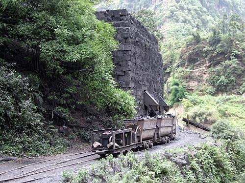 There was one more coal mine before the dam, a relatively new and large operation, clearly prosperous as the owner was constructing a large concrete girder bridge across the gorge to avoid using the dirt road behind his mine. As a result the cableway and the ferry would shortly become redundant. It was still lunchtime at there was nothing of any significance visible on the small amount of railway which was not underground: