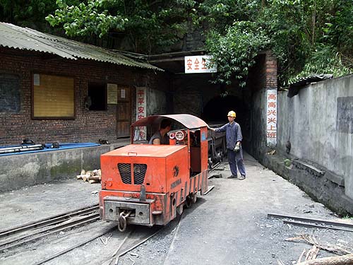 Up above, the trackwork was a wonder to behold, 300mm and 600mm although it seemed very likely that the former was disused. It was lunch time, we had more mines to visit so we saw very little movement, save one of their two diesels seen backing into the mine. This was clearly an expanding operation and a clear recipient of some of the trees we had seen being stripped out of the hills on our previous trip to Huangdan.